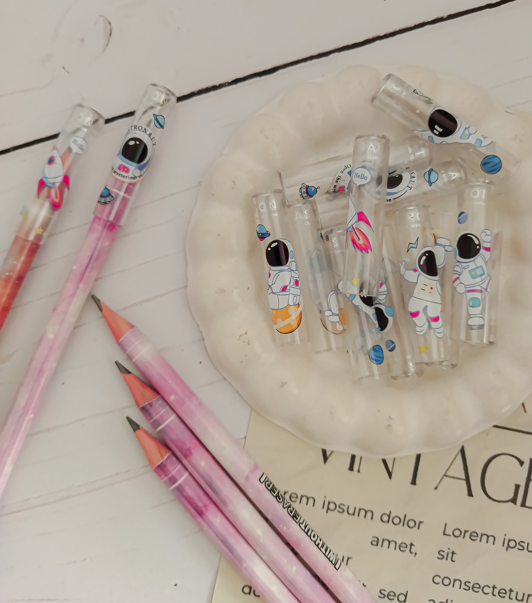 حالا ما برای بچهای دبستانی که خودکار ندارن ولی همیشه جامدادیشون سیاه و کثیف میشه برای مداد هاشون درب های کیوت آوردیم 🥹